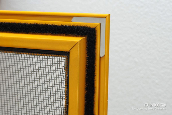 - Rám lze opatřit integrovaným kartáčkem, který perfektně dotěsní veškeré nerovnosti mezi rámem sítě a oknem.